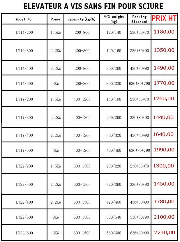Le premier chiffre indique le diamètre du tuyau en cm (LT14) et le deuxième chiffre correspond à la longueur de l'élévateur (200).