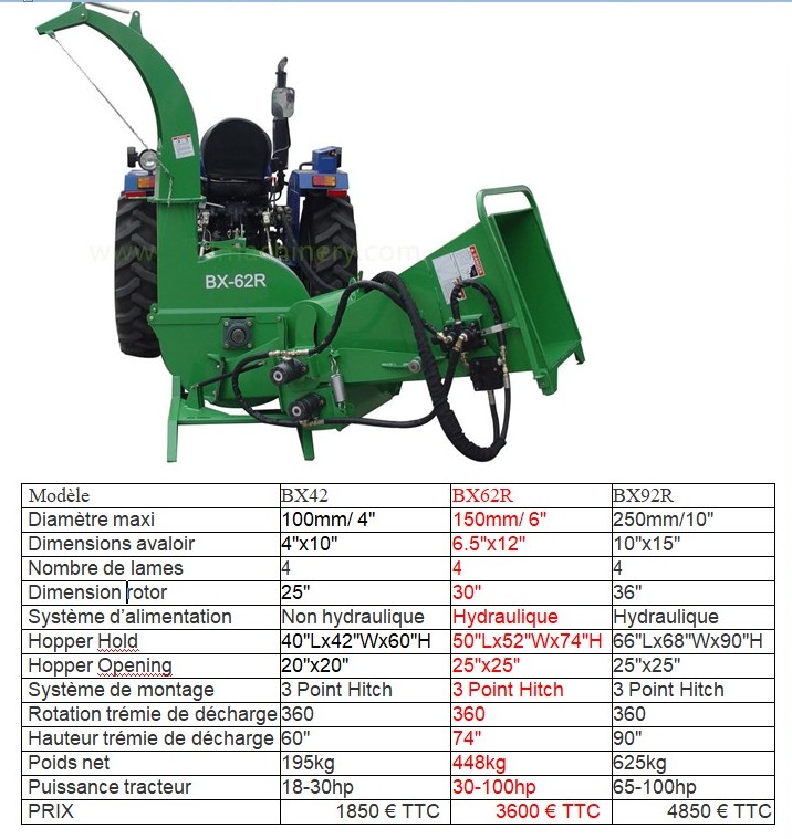 Broyeur de végétaux pour tracteur. BX-42-62 et 92R