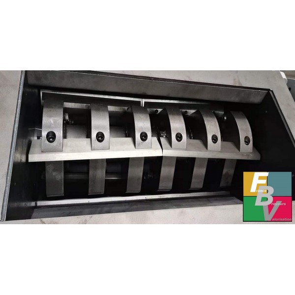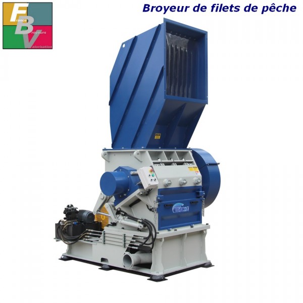 Un broyeur puissant de plus de 2,5 tonnes capable de broyer très facilement 600 kgs/h de filets de pêche en nylon.